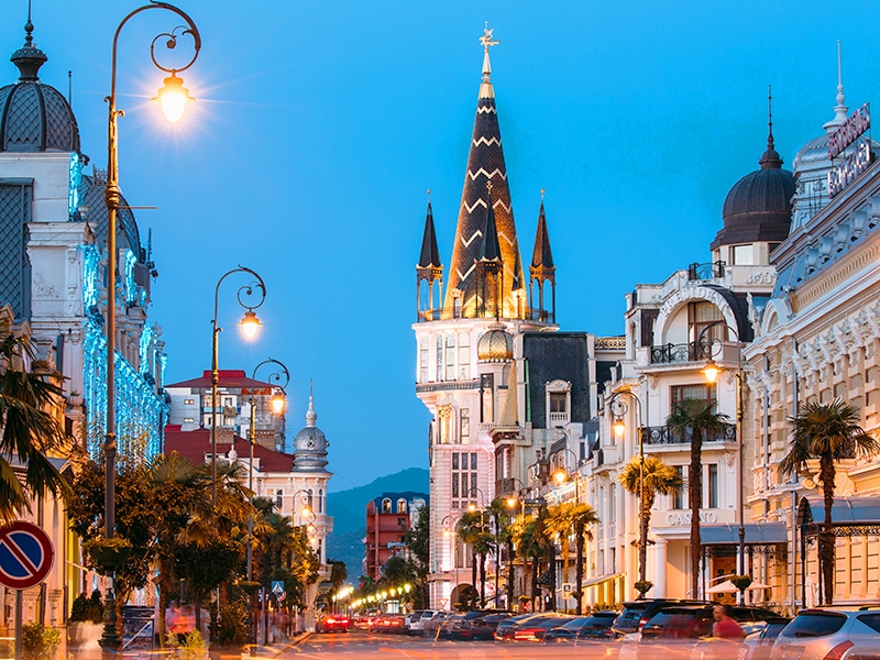 - باتومی: استراحت در سواحل دریای سیاه، بازدید از باغ گیاهشناسی باتومی، برج الفبا و دلفیناریوم.